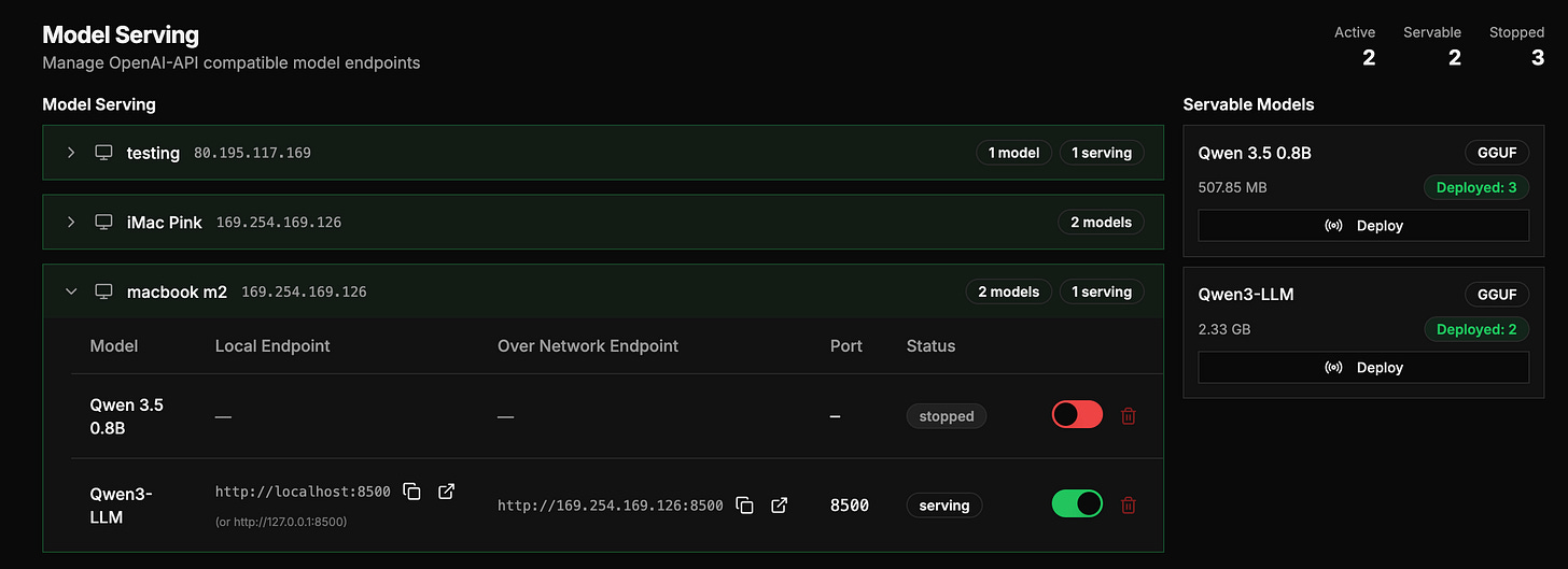 Register your local workstation or private VM with the Loc.ai platform. Select a frontier model like Qwen 3.5, Deepseek 4 or Llama 4 Scout. Use the “Serve” command to create an OpenAI-compatible API endpoint that runs entirely on your own metal.